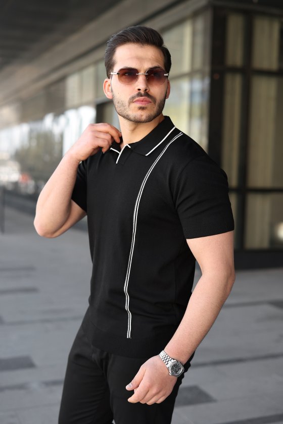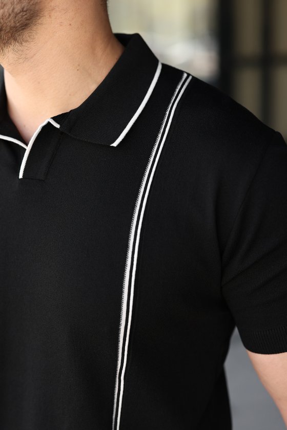 Erkek Çizgi Detaylı Yakalı Triko Tişört