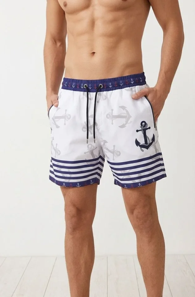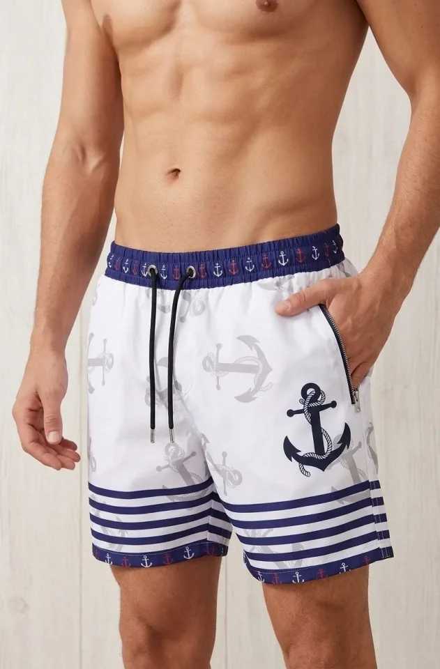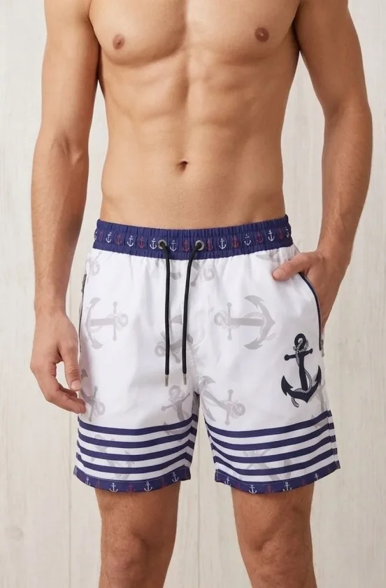 Erkek Deniz Şortu Fermuarlı Cepli File Astarlı Hızlı Kuruyan Premium – Beyaz