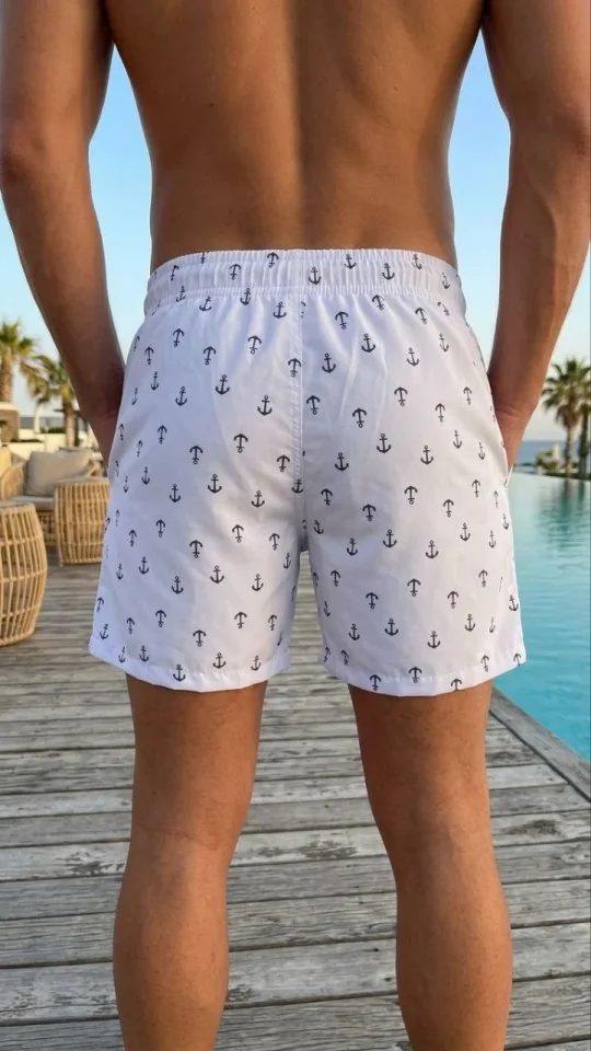 Erkek Deniz Şortu Fermuarlı Cepli File Astarlı Hızlı Kuruyan Premium – Beyaz