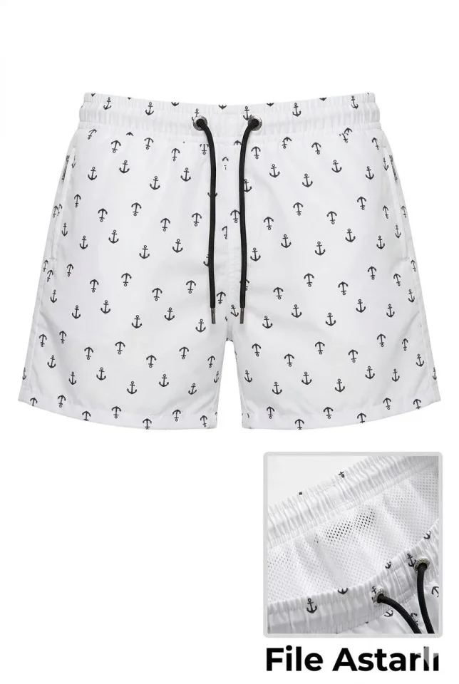 Erkek Deniz Şortu Fermuarlı Cepli File Astarlı Hızlı Kuruyan Premium - Beyaz