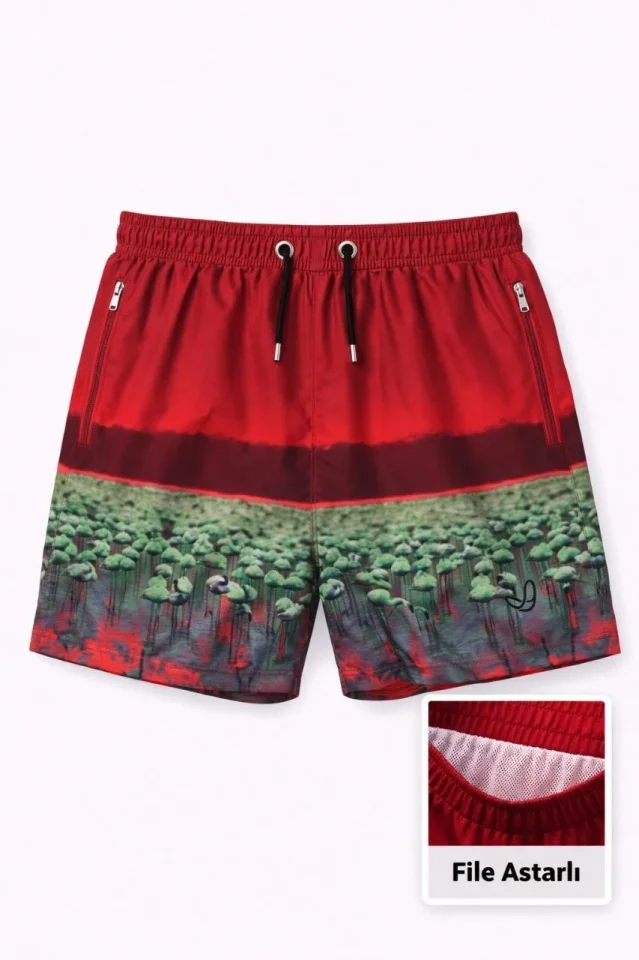 Erkek Deniz Şortu Fermuarlı Cepli File Astarlı Hızlı Kuruyan Premium – Kırmızı