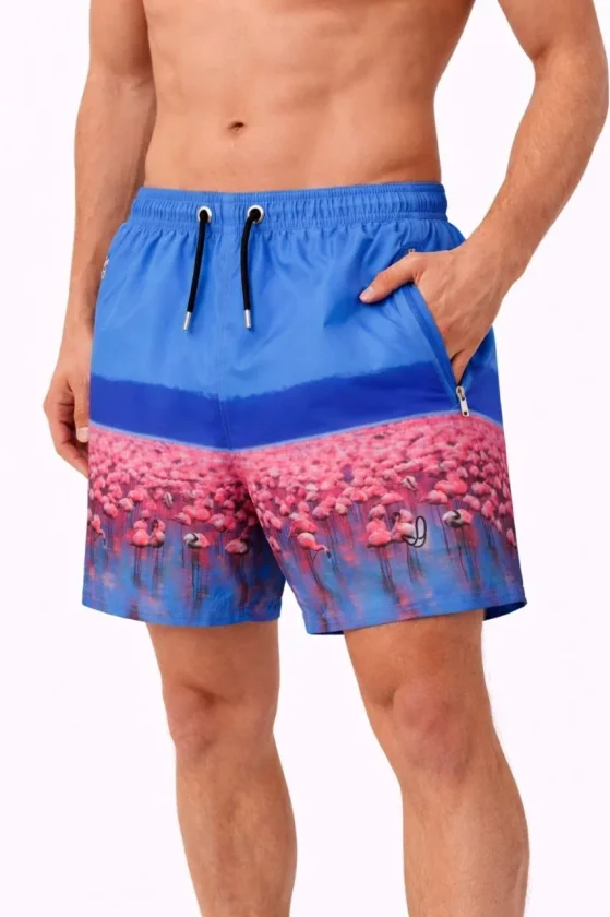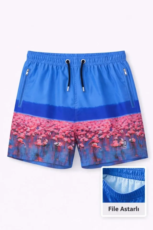 Erkek Deniz Şortu Fermuarlı Cepli File Astarlı Hızlı Kuruyan Premium – Mavi