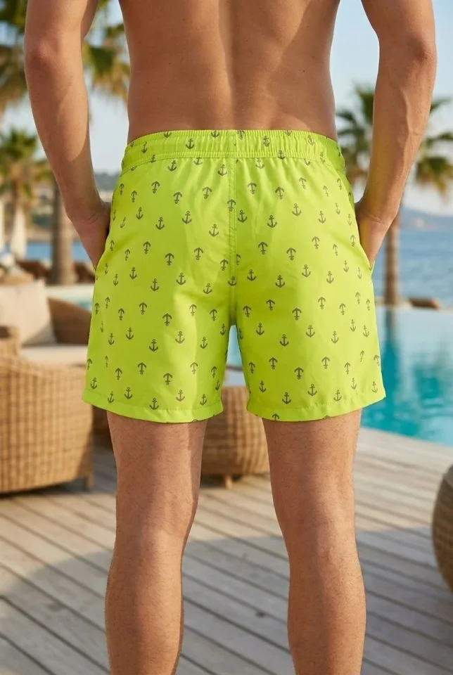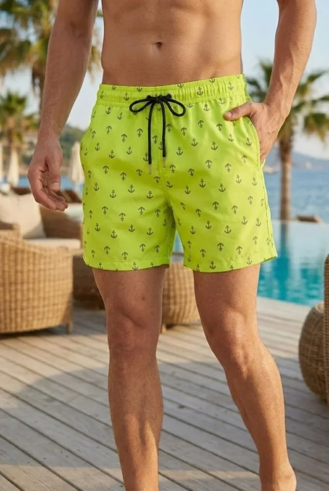 Erkek Deniz Şortu Fermuarlı Cepli File Astarlı Hızlı Kuruyan Premium – Neon Yeşili