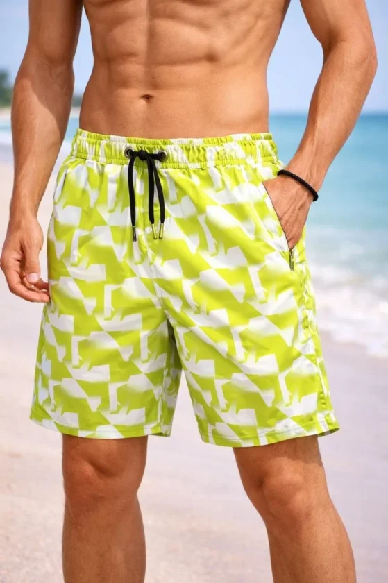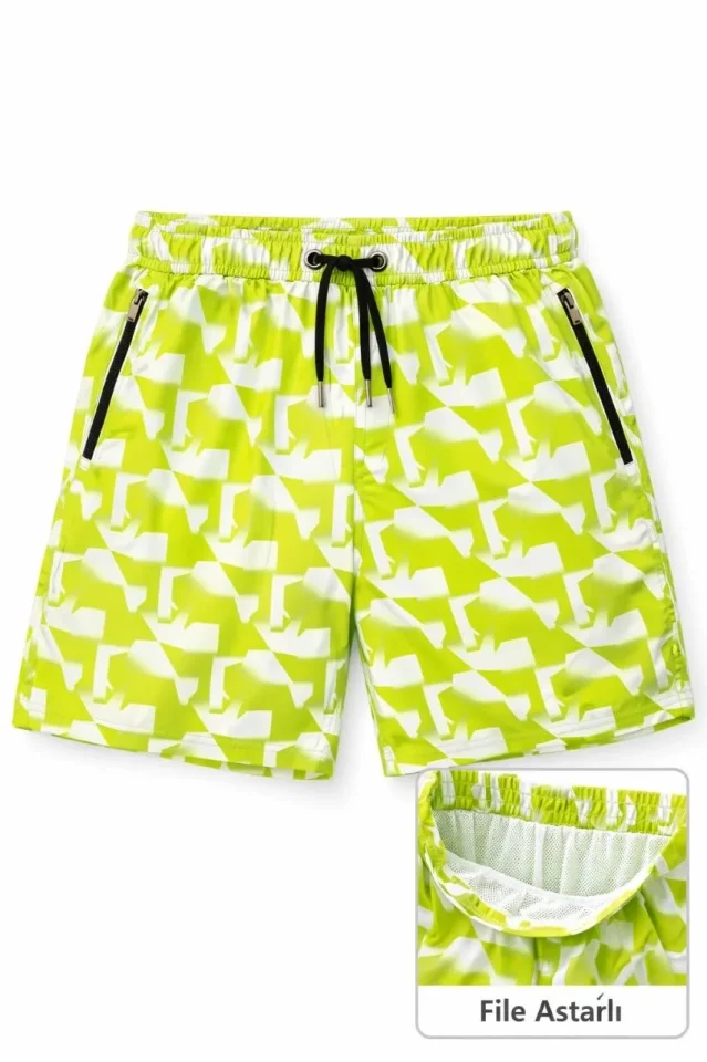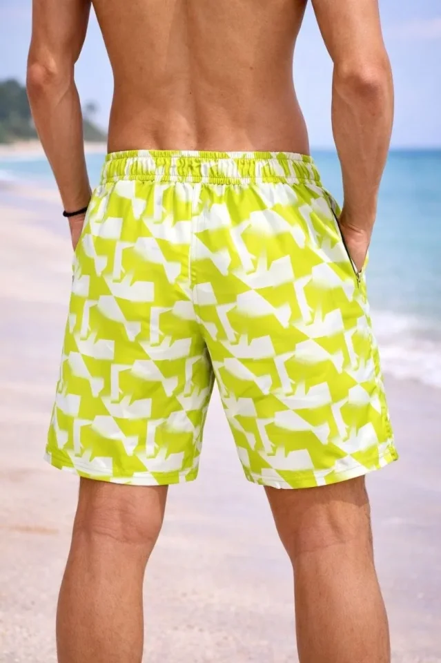 Erkek Deniz Şortu Fermuarlı Cepli File Astarlı Hızlı Kuruyan Premium – Sarı