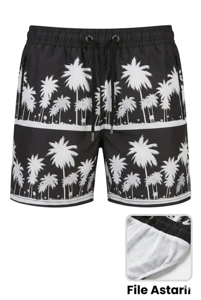 Erkek Deniz Şortu Fermuarlı Cepli File Astarlı Hızlı Kuruyan Premium – Siyah
