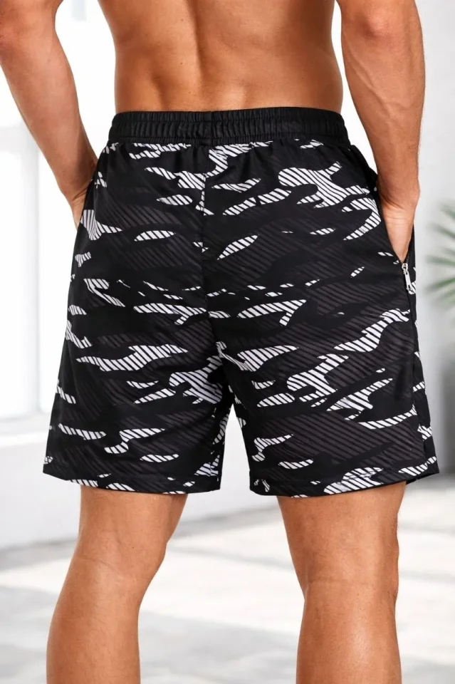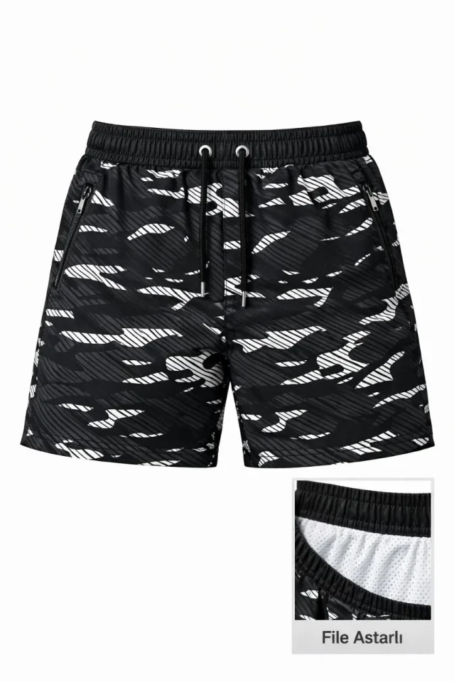 Erkek Deniz Şortu Fermuarlı Cepli File Astarlı Hızlı Kuruyan Premium – Siyah