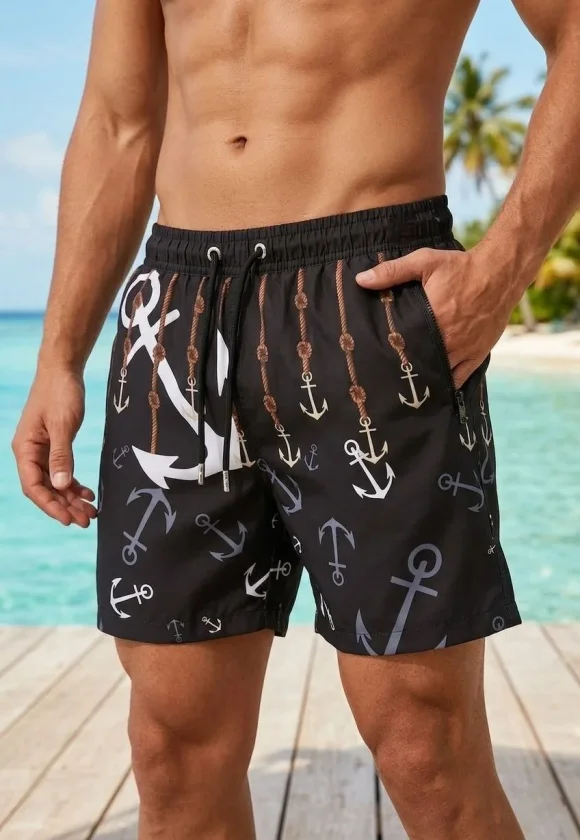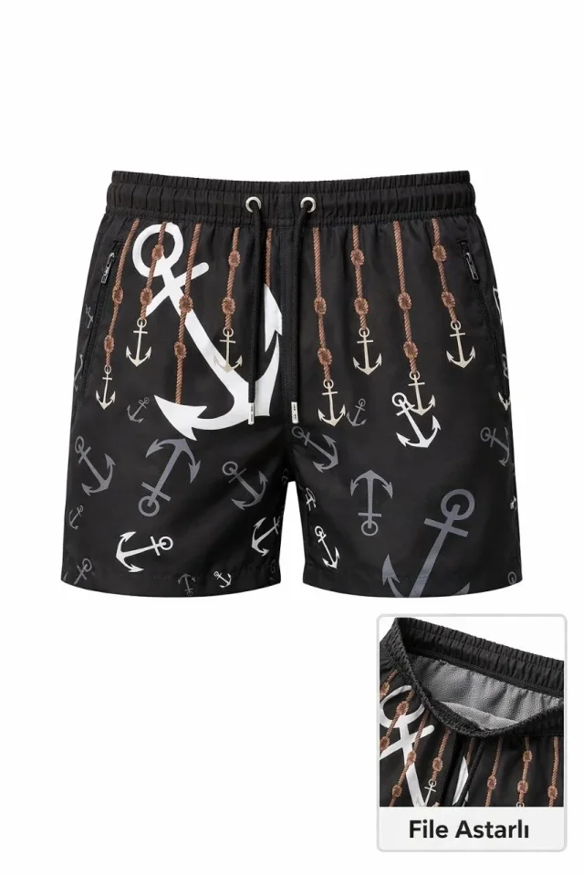 Erkek Deniz Şortu Fermuarlı Cepli File Astarlı Hızlı Kuruyan Premium – Siyah