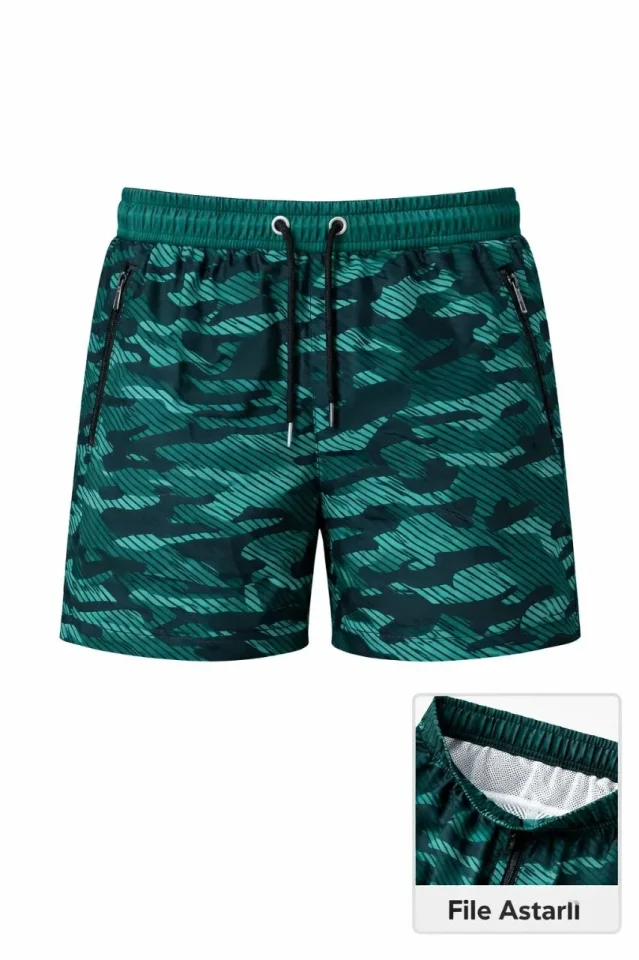 Erkek Deniz Şortu Fermuarlı Cepli File Astarlı Hızlı Kuruyan Premium – Su Yeşili