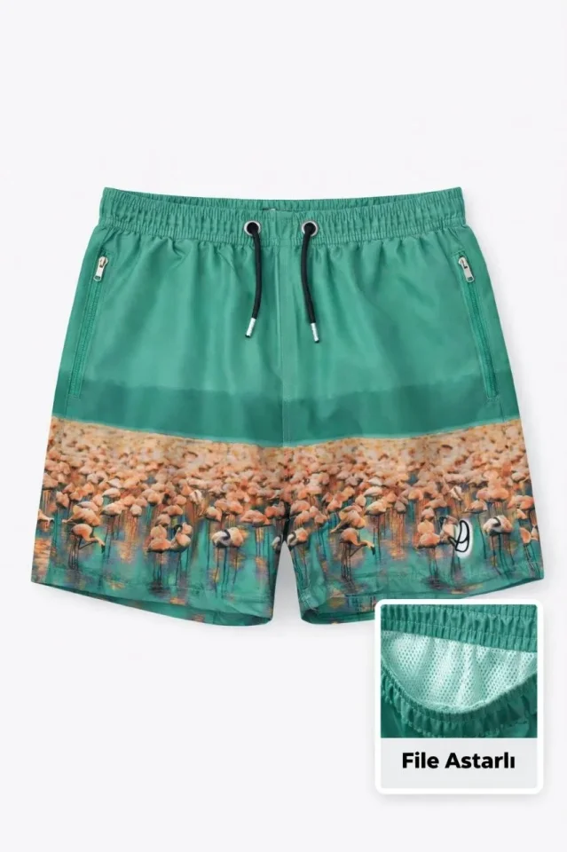 Erkek Deniz Şortu Fermuarlı Cepli File Astarlı Hızlı Kuruyan Premium – Su Yeşili