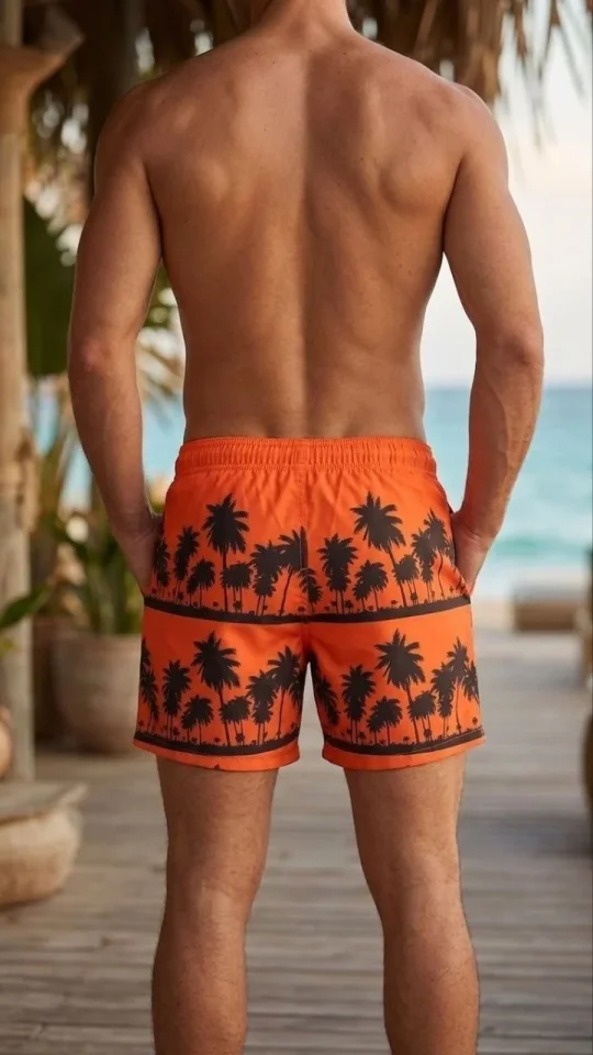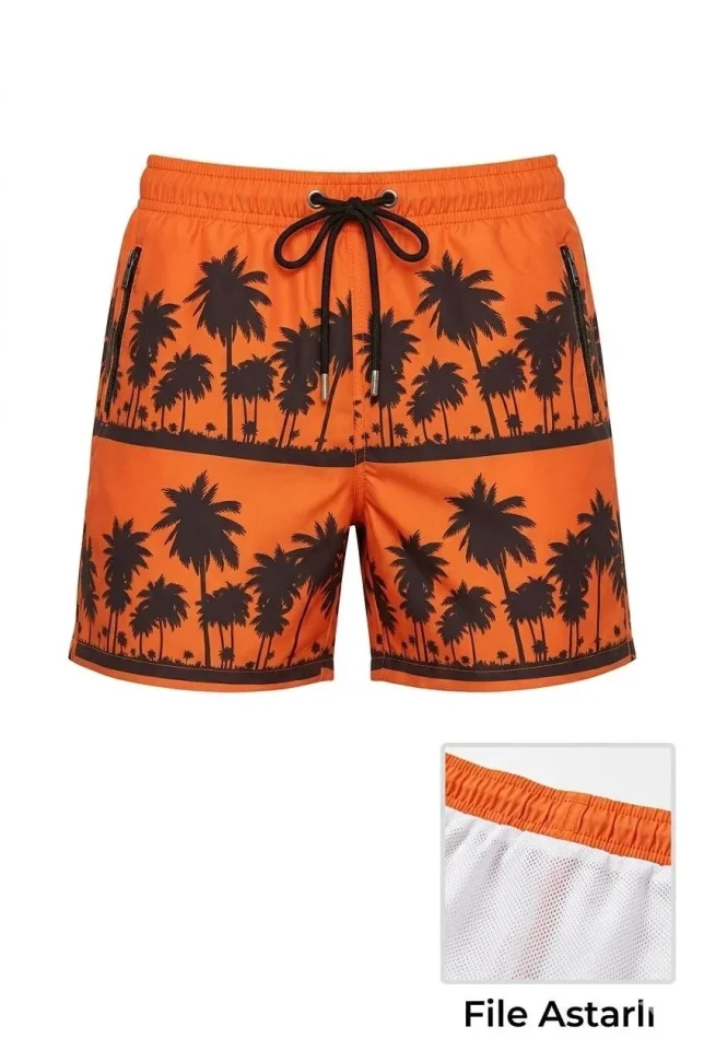 Erkek Deniz Şortu Fermuarlı Cepli File Astarlı Hızlı Kuruyan Premium – Turuncu