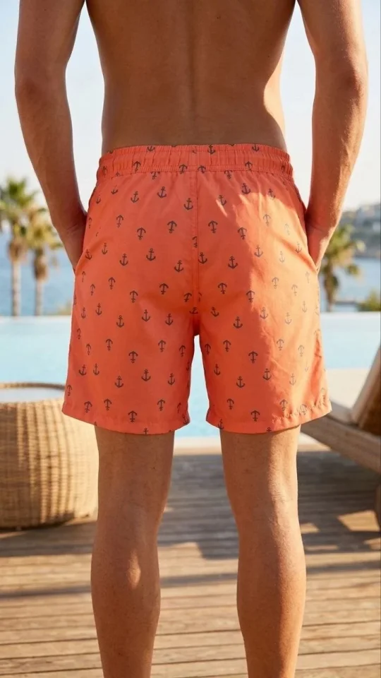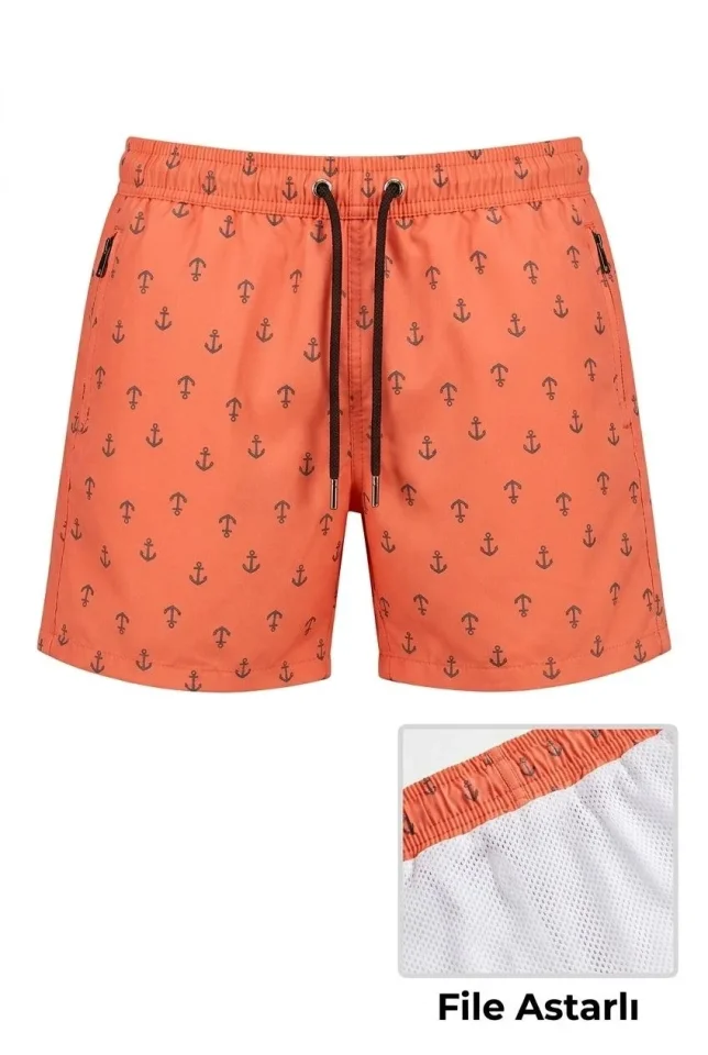 Erkek Deniz Şortu Fermuarlı Cepli File Astarlı Hızlı Kuruyan Premium – Turuncu