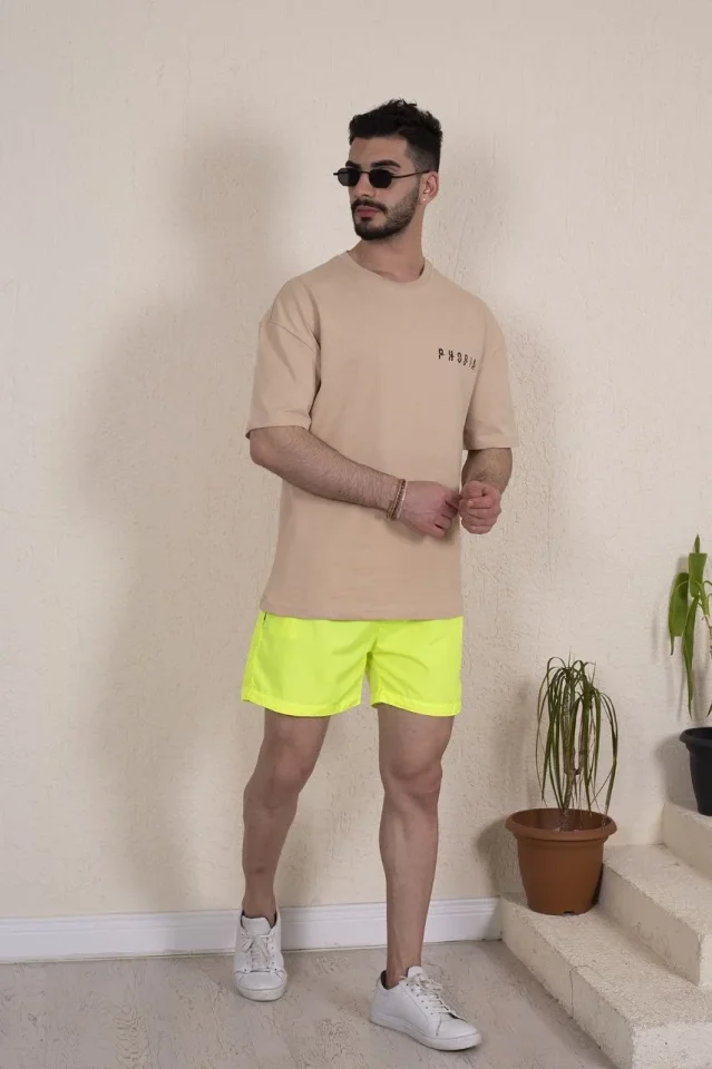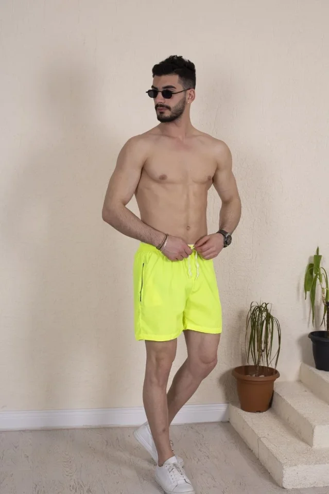 Erkek Deniz Şortu Fermuarlı Cepli File Astarlı – Neon Yeşili