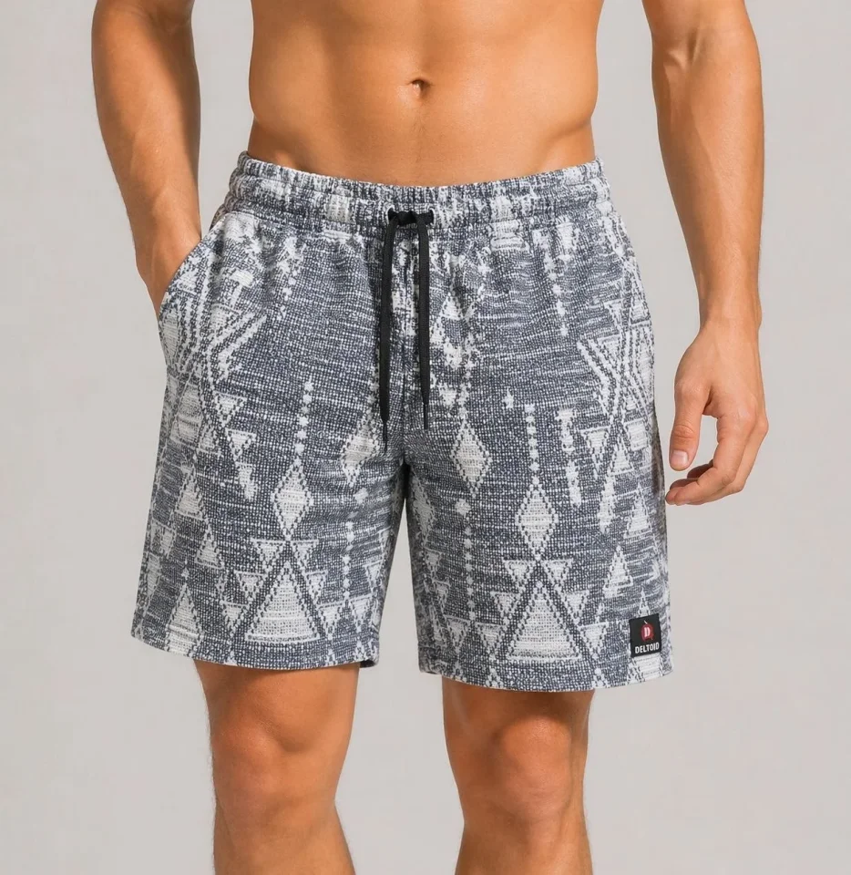 Erkek Desenli Dokuma Yazlık Şort Lastikli Bel Bağcıklı Rahat Kesim – Gri
