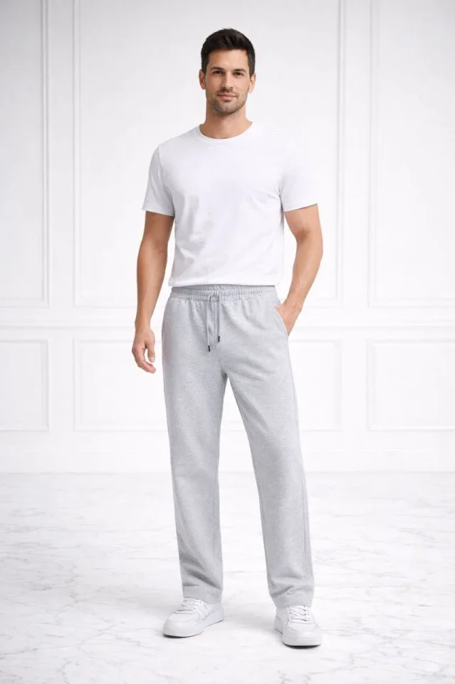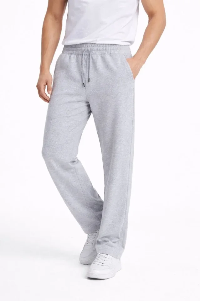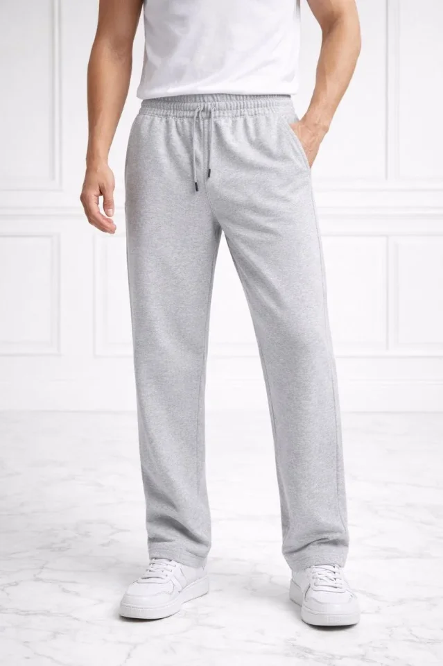 Erkek Düz Paça Beli Lastikli İpli Günlük Spor Eşofman Altı Rahat Fit – Gri