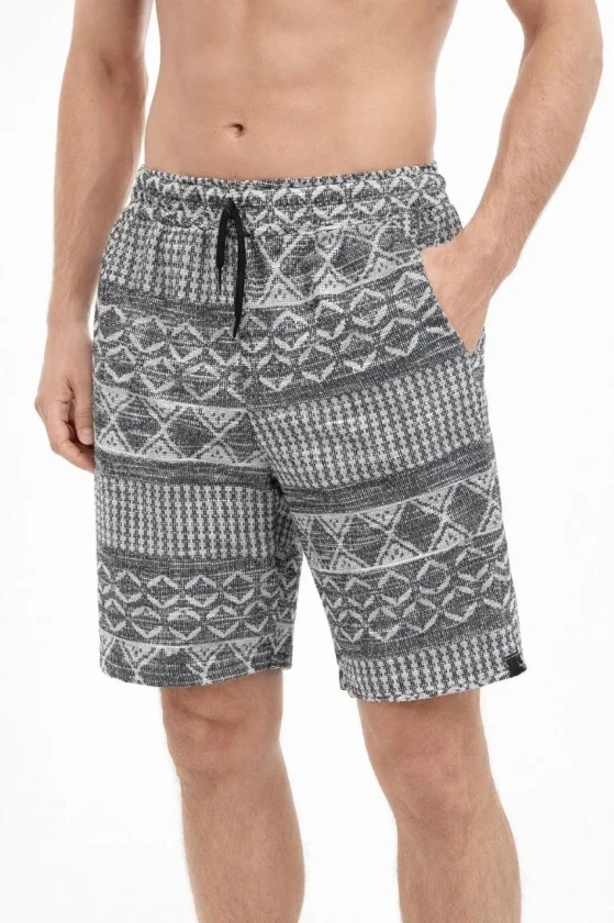 Erkek Etnik Desenli Dokuma Şort Lastikli Bel Bağcıklı Cepli Yazlık - Gri
