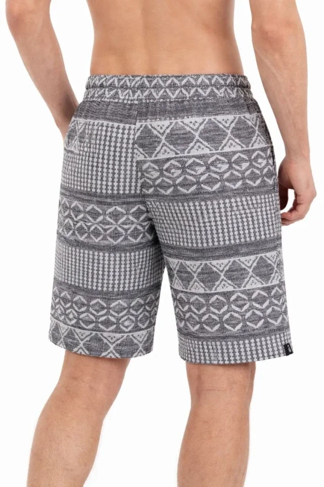Erkek Etnik Desenli Dokuma Şort Lastikli Bel Bağcıklı Cepli Yazlık – Gri