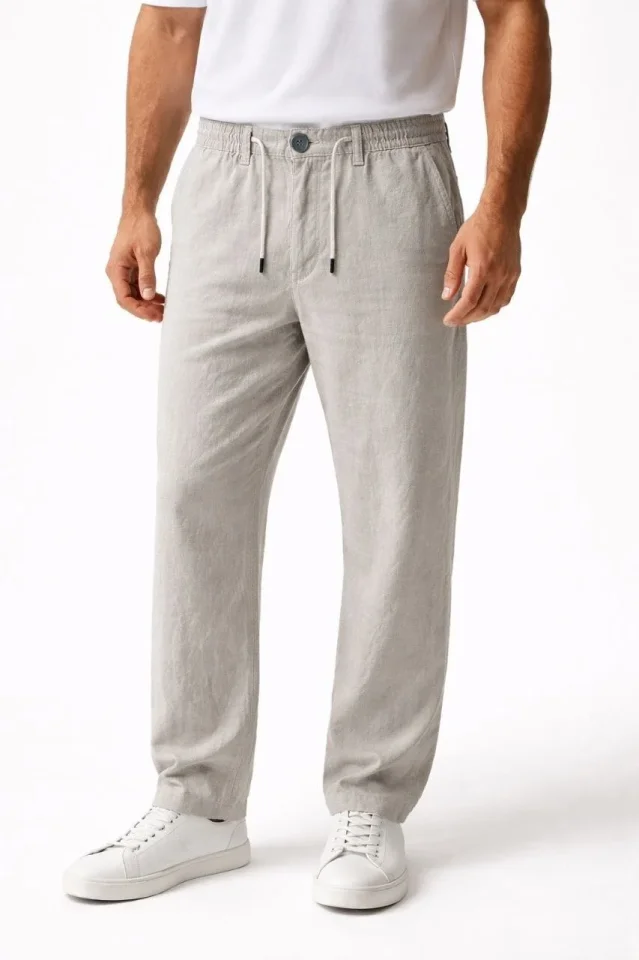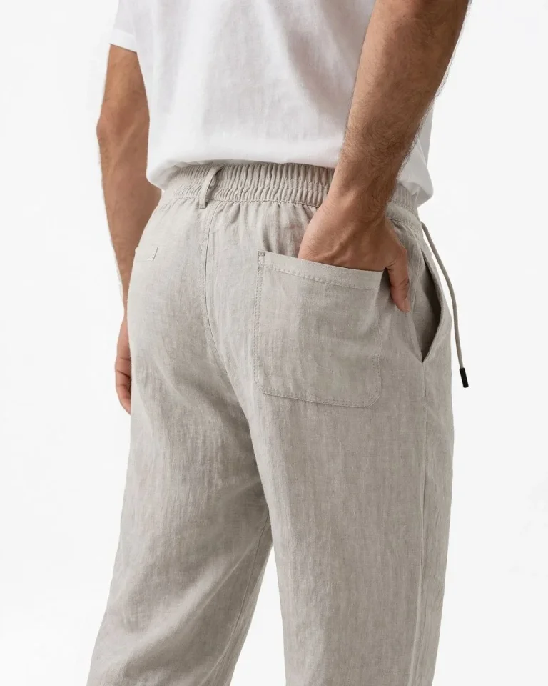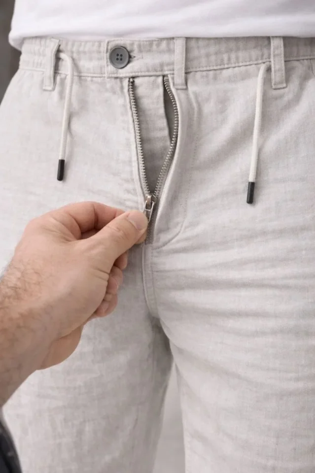Erkek Keten Cepli Pantolon Lastikli Bel Bağcıklı Önden Fermuarlı – Gri
