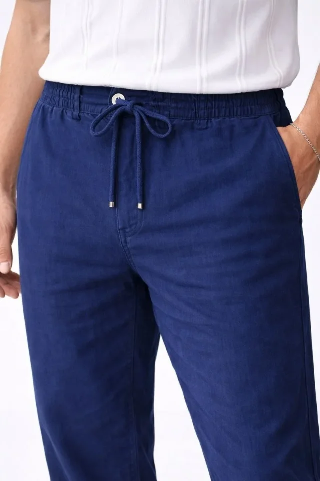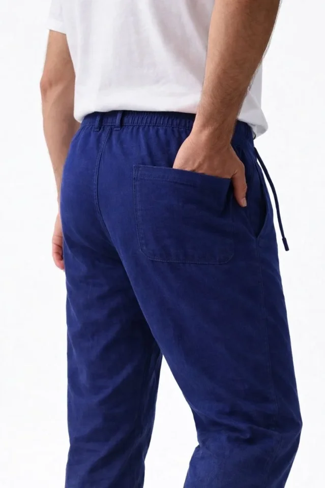 Erkek Keten Cepli Pantolon Lastikli Bel Bağcıklı Önden Fermuarlı – İndigo