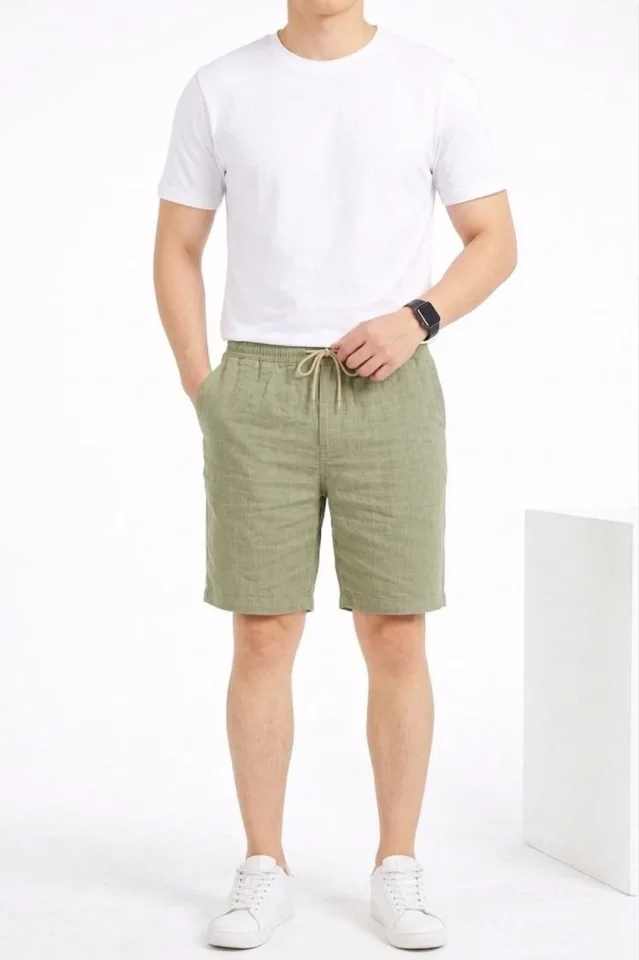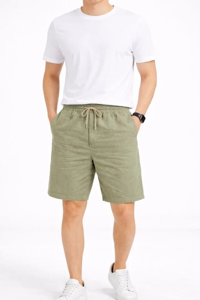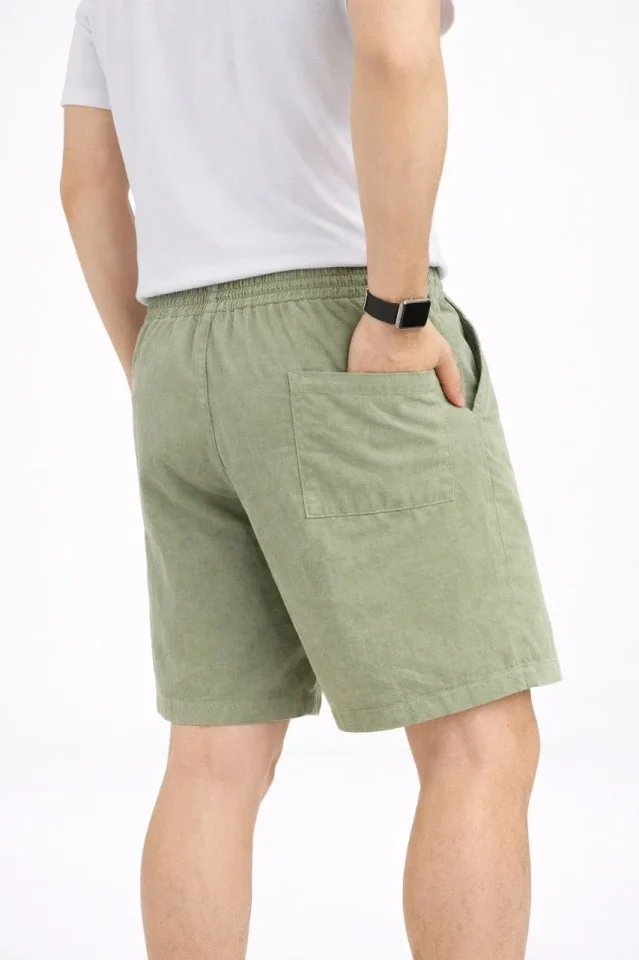 Erkek Keten Kumaş Cepli Rahat Kesim Bel Lastikli Şort – Mint Yeşili
