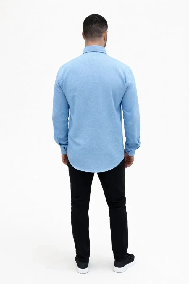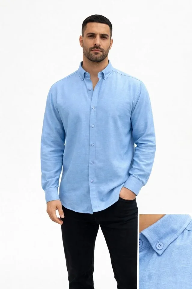 Erkek KETEN Kumaş Oversize Uzun Kollu Rahat Kalıp Gömlek – Açık Mavi