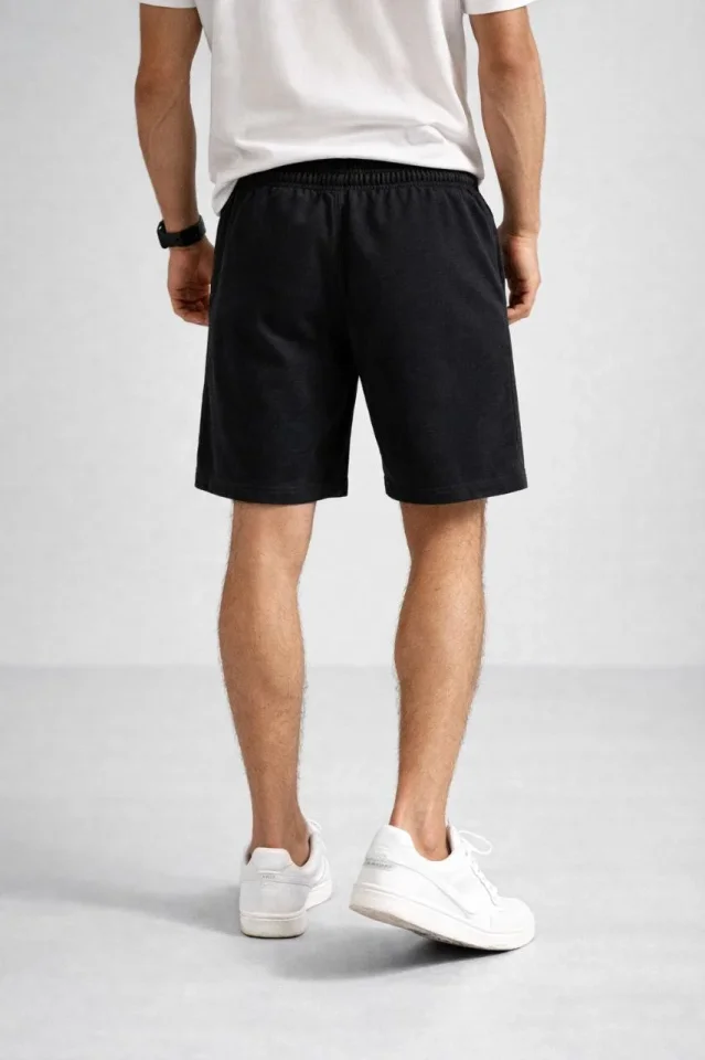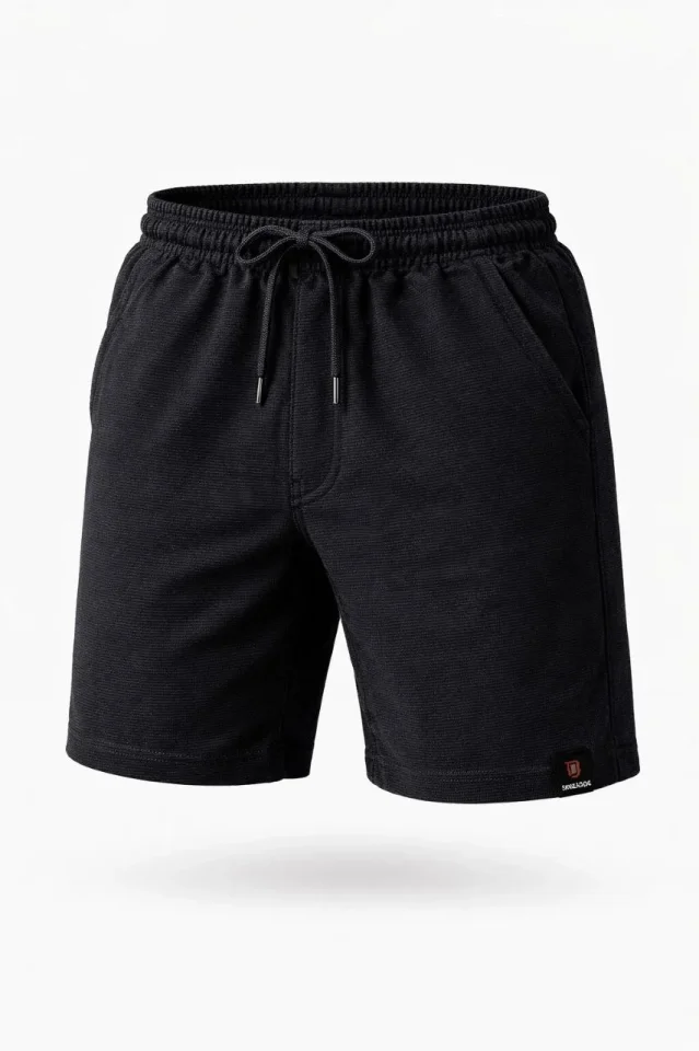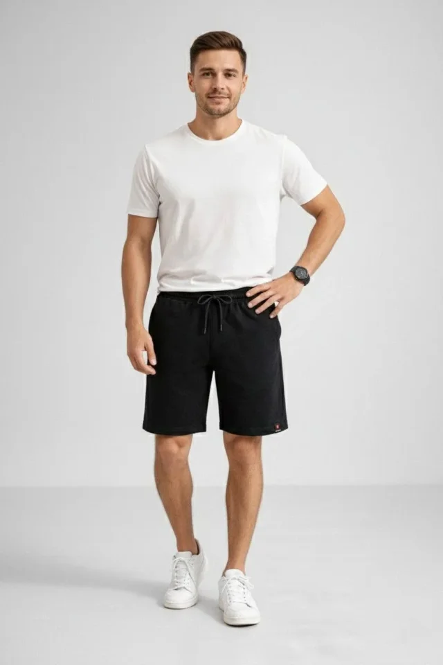 Erkek Otoban Dokuma Şort Beli Lastikli Bağcıklı, Cepli, Rahat Kesim Günlük Yazlık Şort – Siyah
