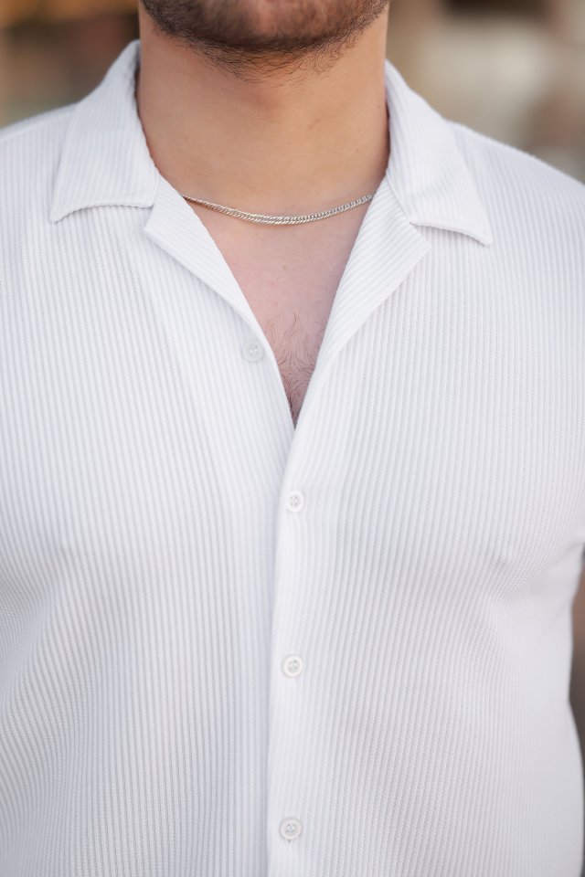 Erkek Günlük Şıklık Ottoman Kumaş Apaj Yaka Kısa Kollu Gömlek