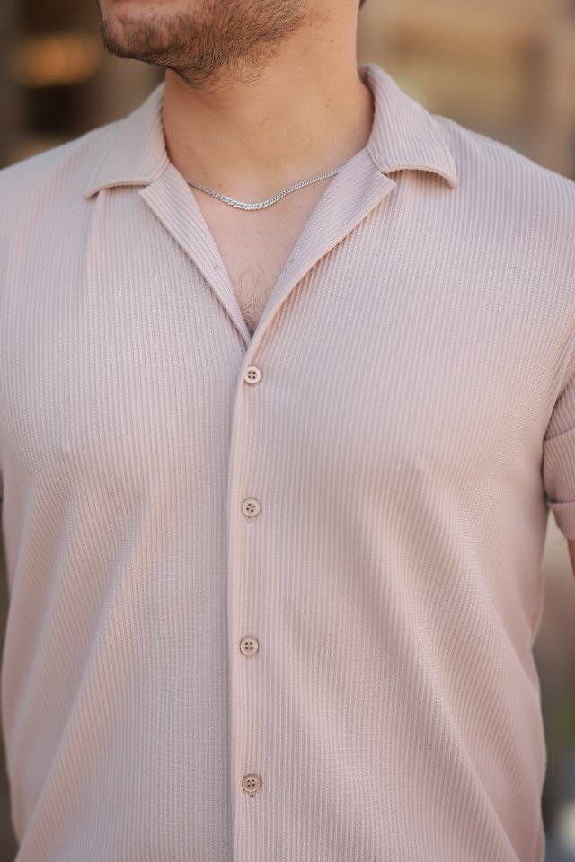 Erkek Günlük Şıklık Ottoman Kumaş Apaj Yaka Kısa Kollu Gömlek