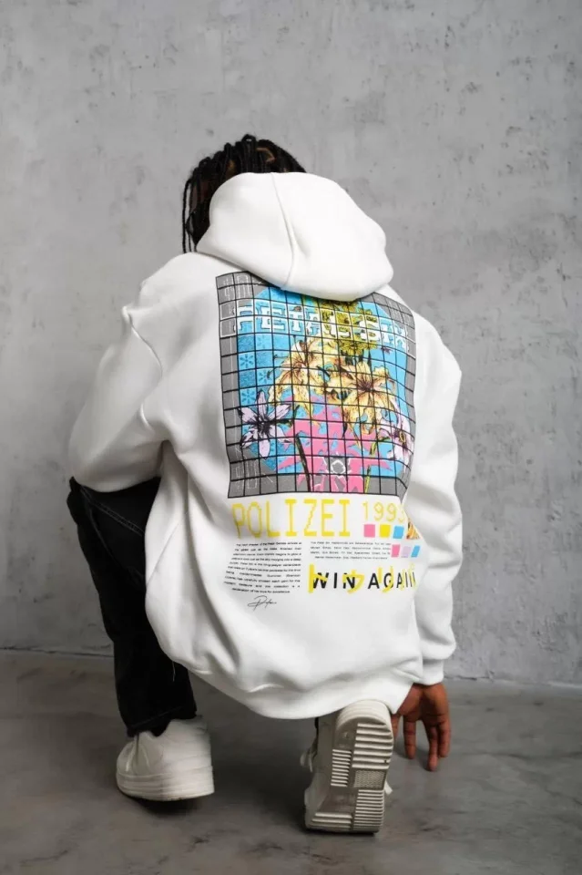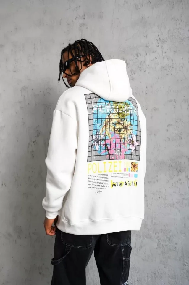 Baskılı Erkek Patel Six Tipografi Beyaz Kapüşonlu Sweatshirt