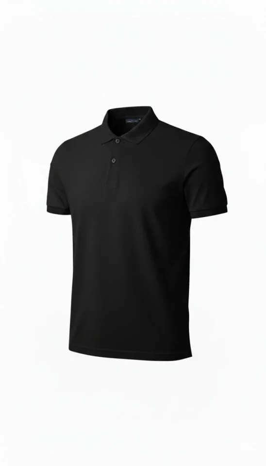 Erkek Siyah Pike Kumaş Düğmeli Yaka Regular Fit Günlük Kısa Kol Tişört