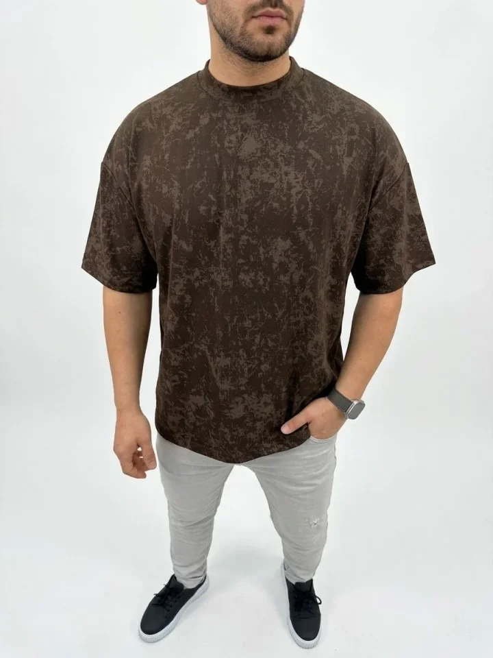 Erkek Premium Tişört OSY Yumuşak Dokulu Yıkamalı Oversize T-Shirt – Kahverengi