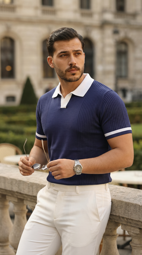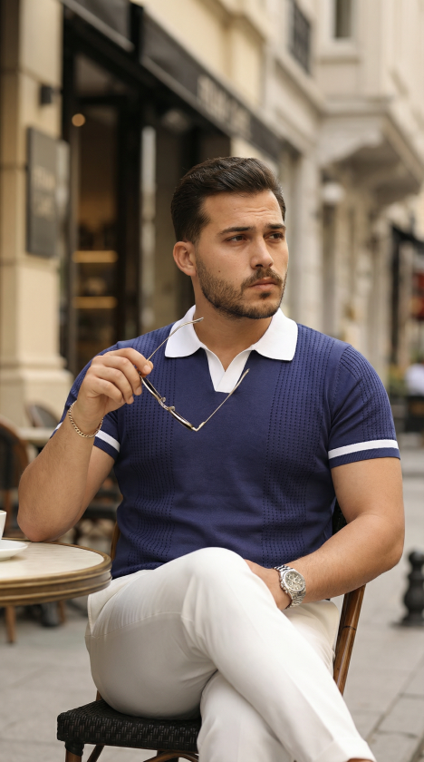 Desenli Erkek Günlük Stil Renkli Yakalı File Kısa Kollu Tişört