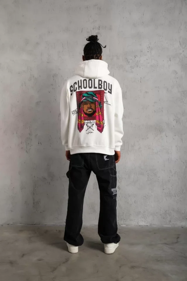 School Boy Karakter Baskılı Erkek Beyaz Kapüşonlu Sweatshirt