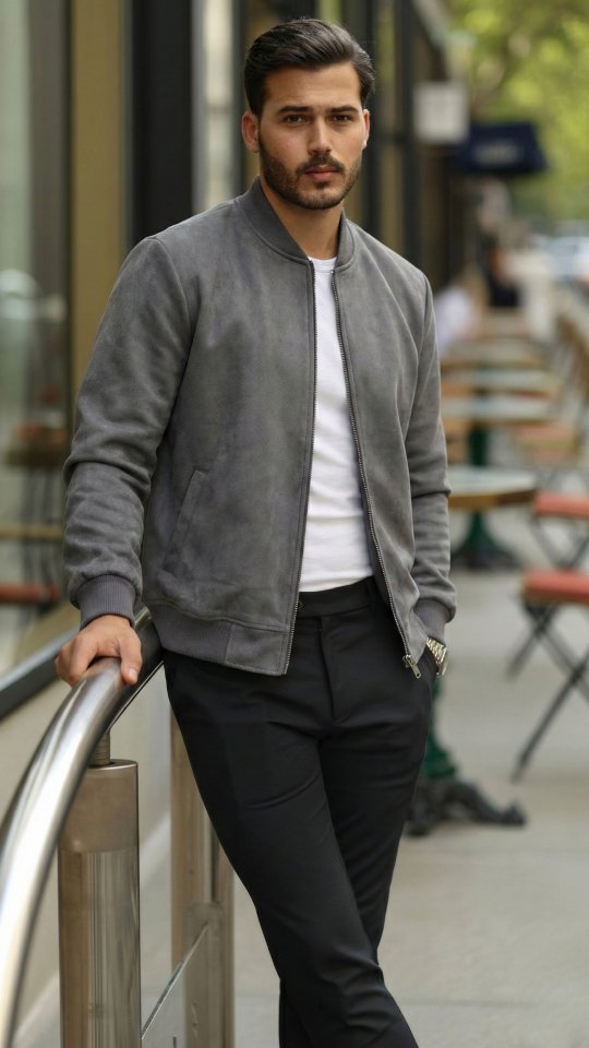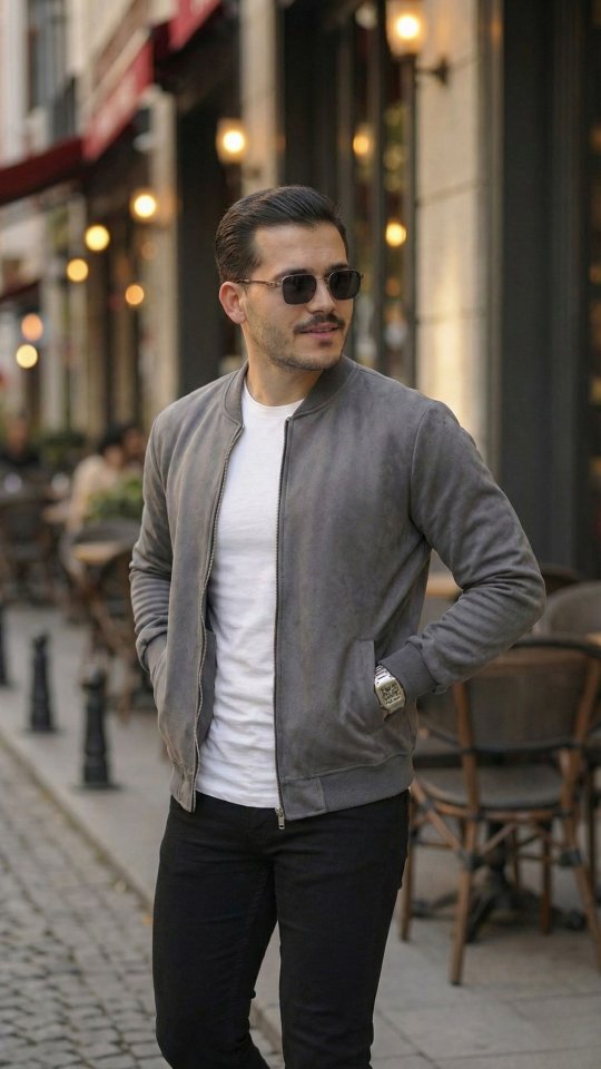 Süet Erkek Günlük Şıklık Scuba Kumaş Bomber Hırka