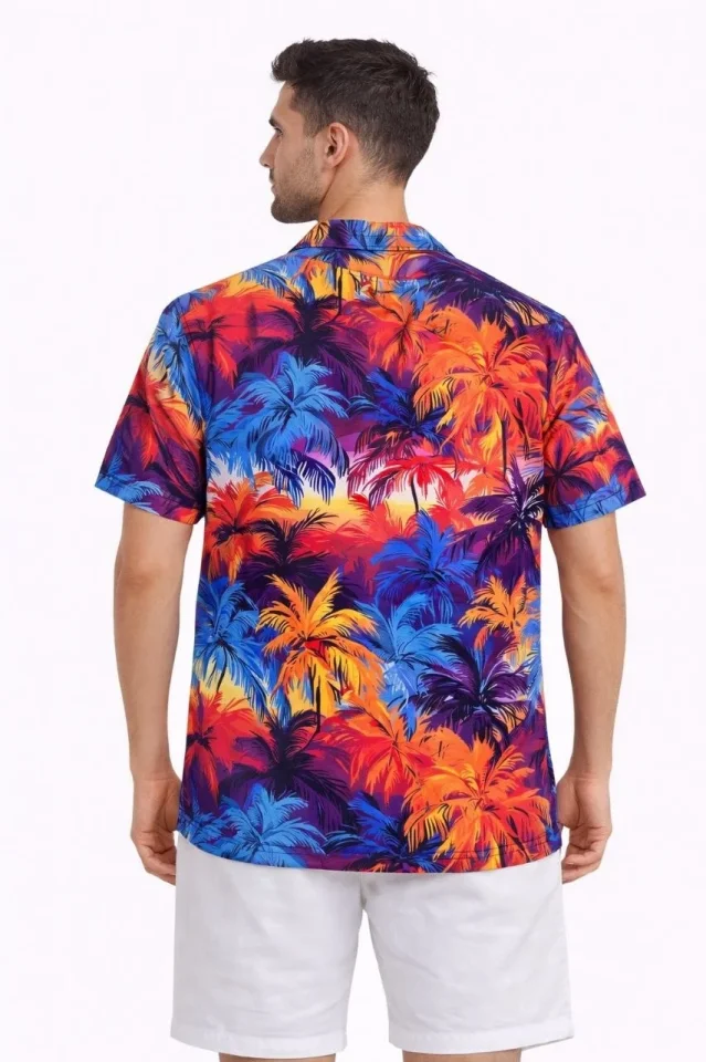 Erkek Tropikal Desenli Kısa Kol Gömlek Rahat Kalıp Yazlık Hawaii Tarz – Desenli