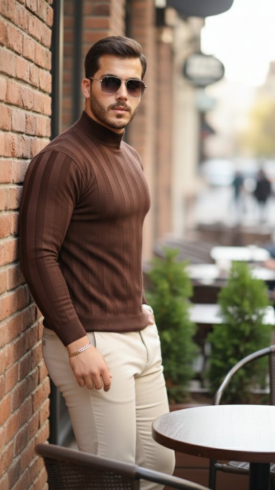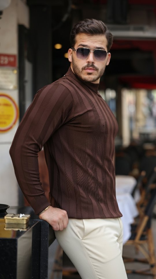 Desenli Erkek Modern Stil Yarım Balıkçı Yaka Kabartma Triko
