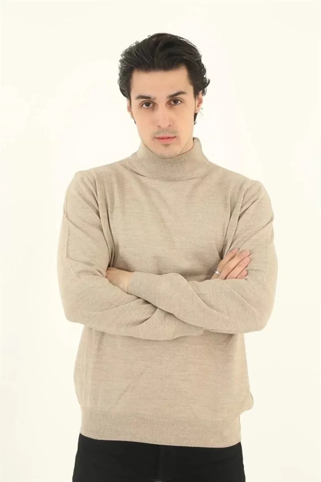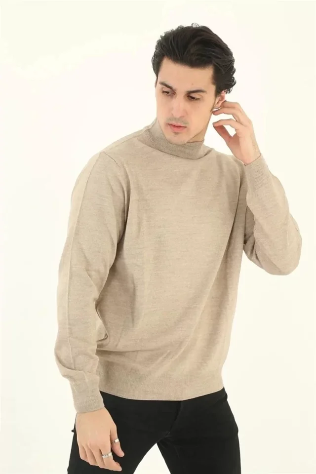 Erkek Yarım Balıkçı Yaka Triko Kazak – Bej