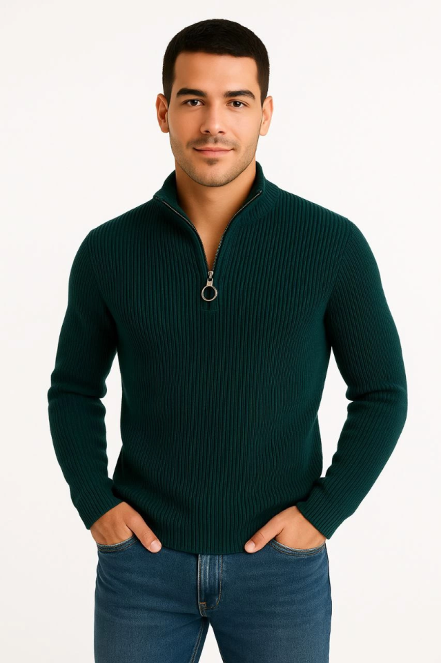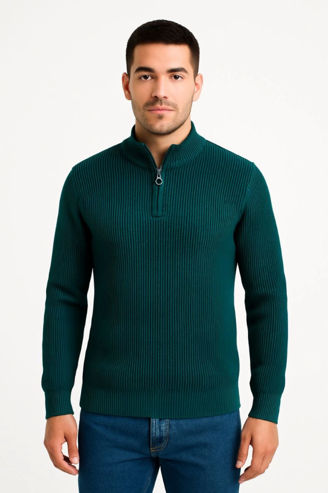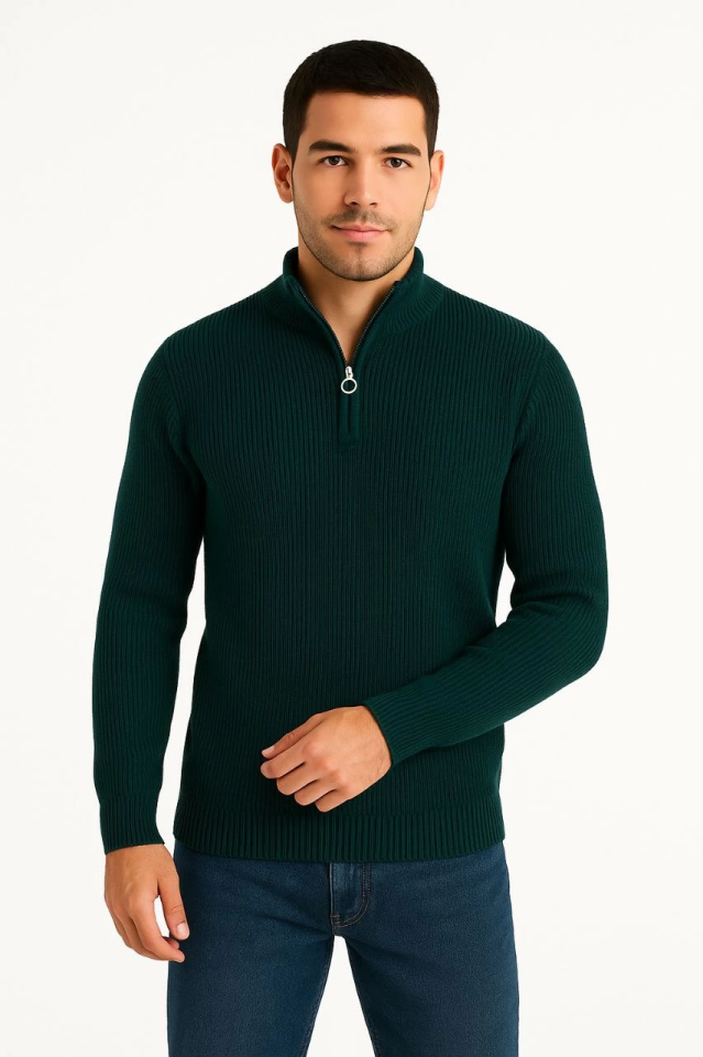 Erkek Yarım Fermuarlı Triko Kazak – Selanik Örgü