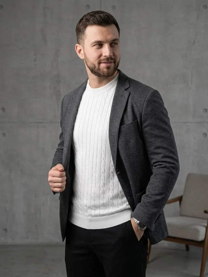 Erkek Yazlık Triko Dokuma Tişört Kısa Kol Bisiklet Yaka Örgü Desenli T-Shirt – Beyaz