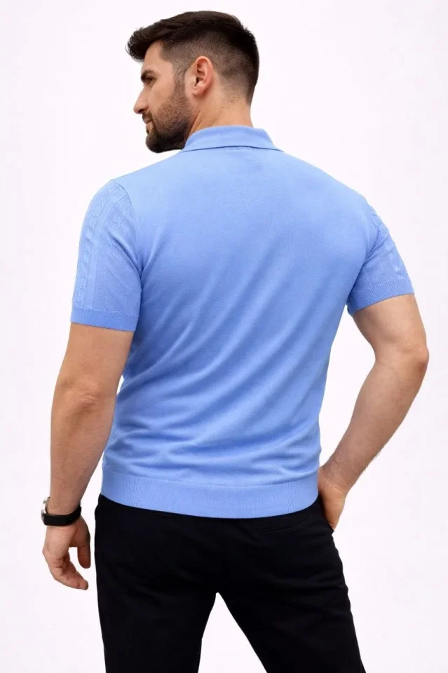 Erkek Yazlık Triko Tişört Kısa Kol Polo Yaka Düğmeli T-Shirt – Bebek Mavisi