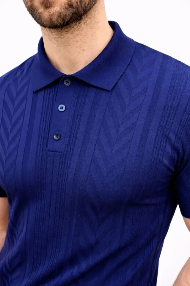 Erkek Yazlık Triko Tişört Kısa Kol Polo Yaka Düğmeli T-Shirt – Lacivert