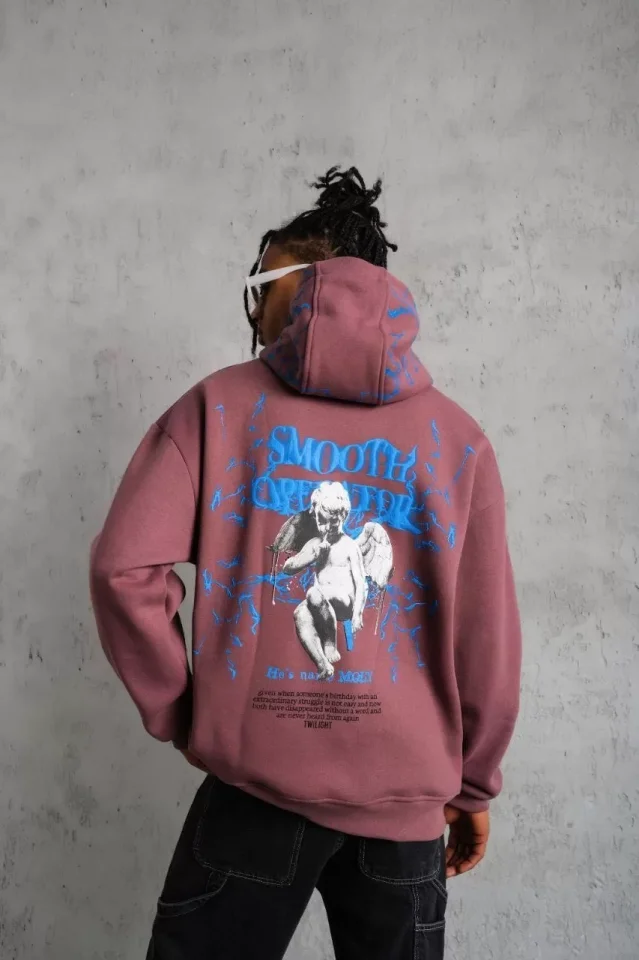 Yıldırım Figür Baskılı Erkek Gül Kurusu Kapüşonlu Sweatshirt