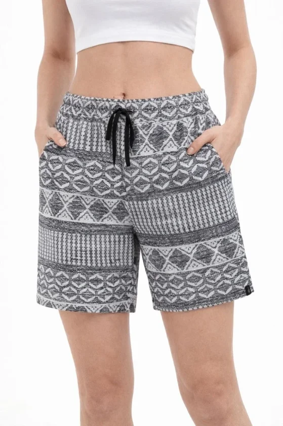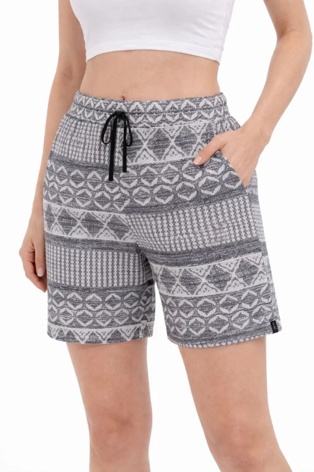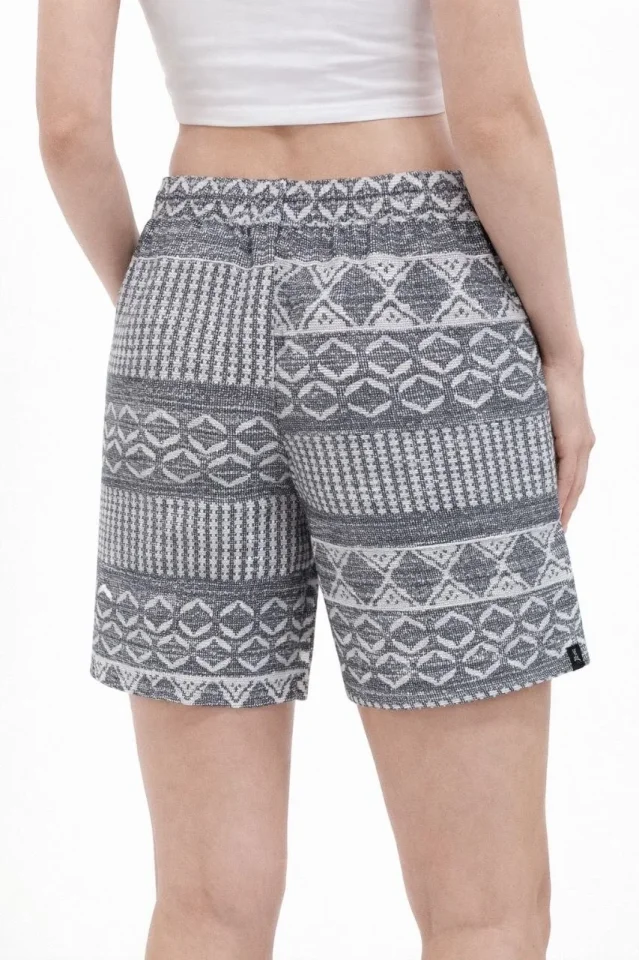 Etnik Desenli Dokuma Şort Lastikli Bel Bağcıklı Cepli Yazlık – Gri