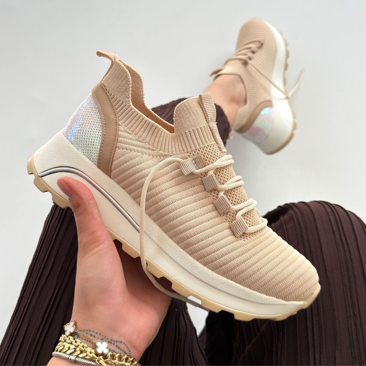 Feort Bej Triko Bağcıklı Spor Ayakkabı
