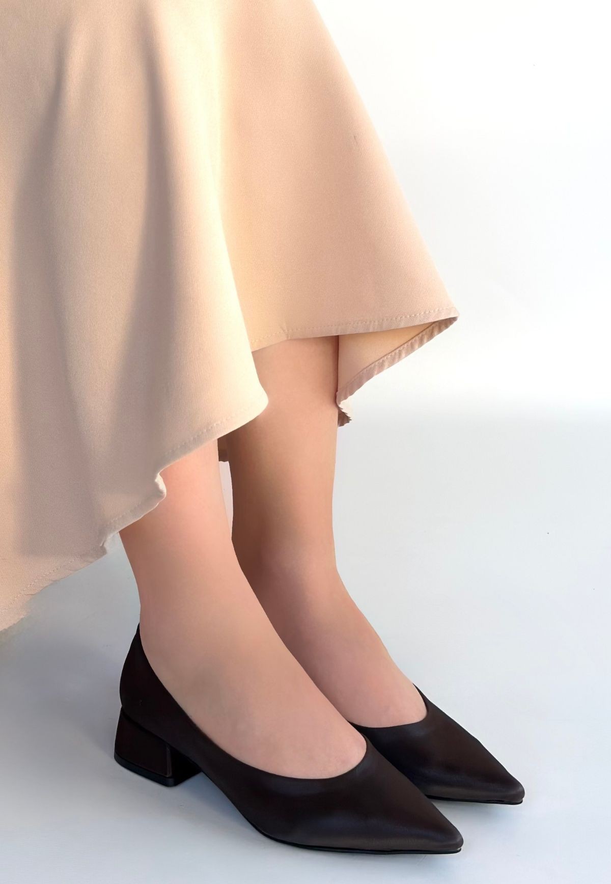 Ferla Acı Kahve Cilt Topuklu Ayakkabı