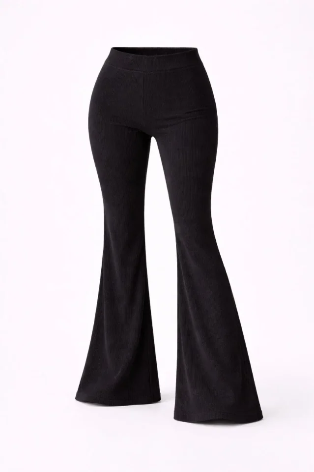 Fitilli Kaşkorse İspanyol Paça Tayt Yüksek Bel Esnek Günlük Rahat Pantolon – Siyah