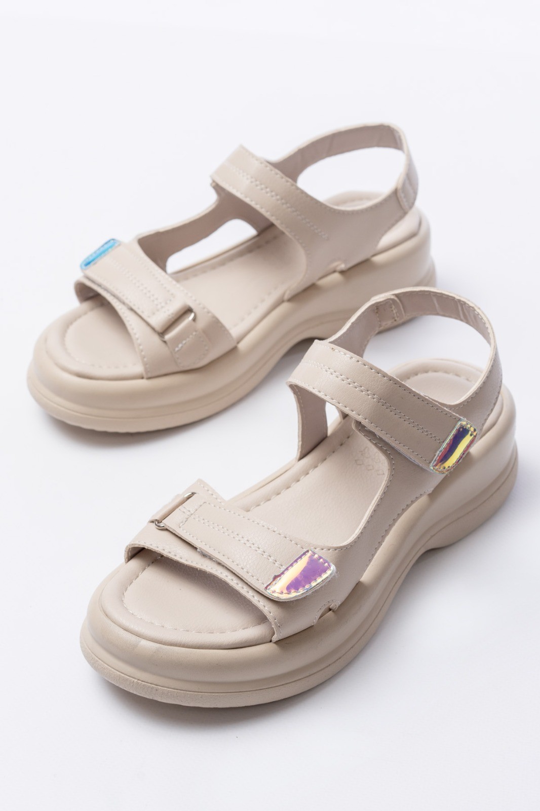 Cilt Kadın Konforlu Adım Ginya Bej Cırt Cırtlı Sandalet
