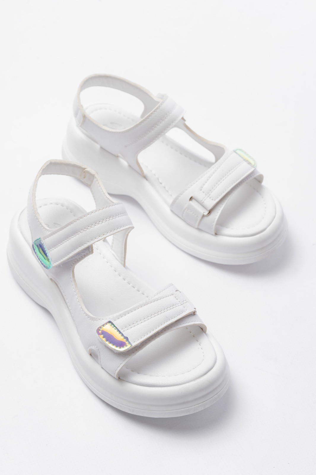 Cilt Kadın Konforlu Adım Ginya Beyaz Cırt Cırtlı Sandalet