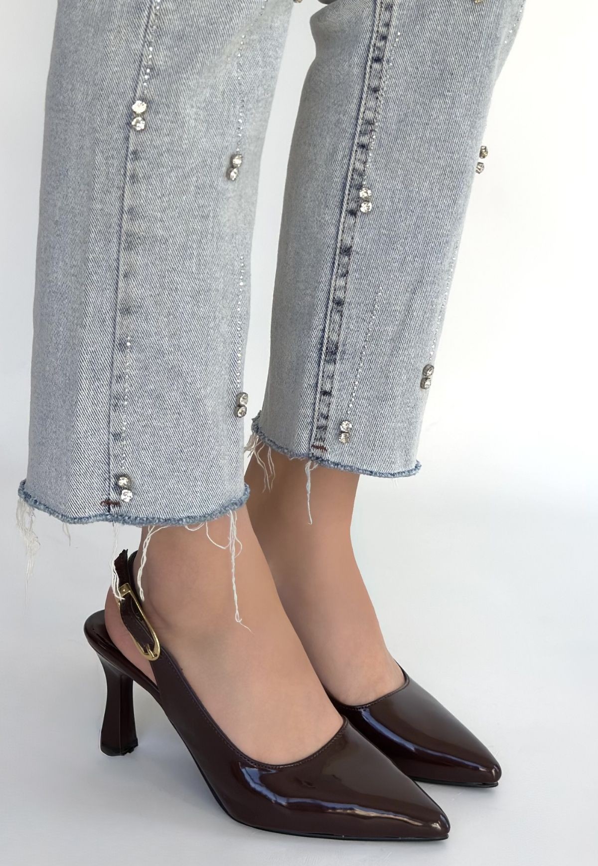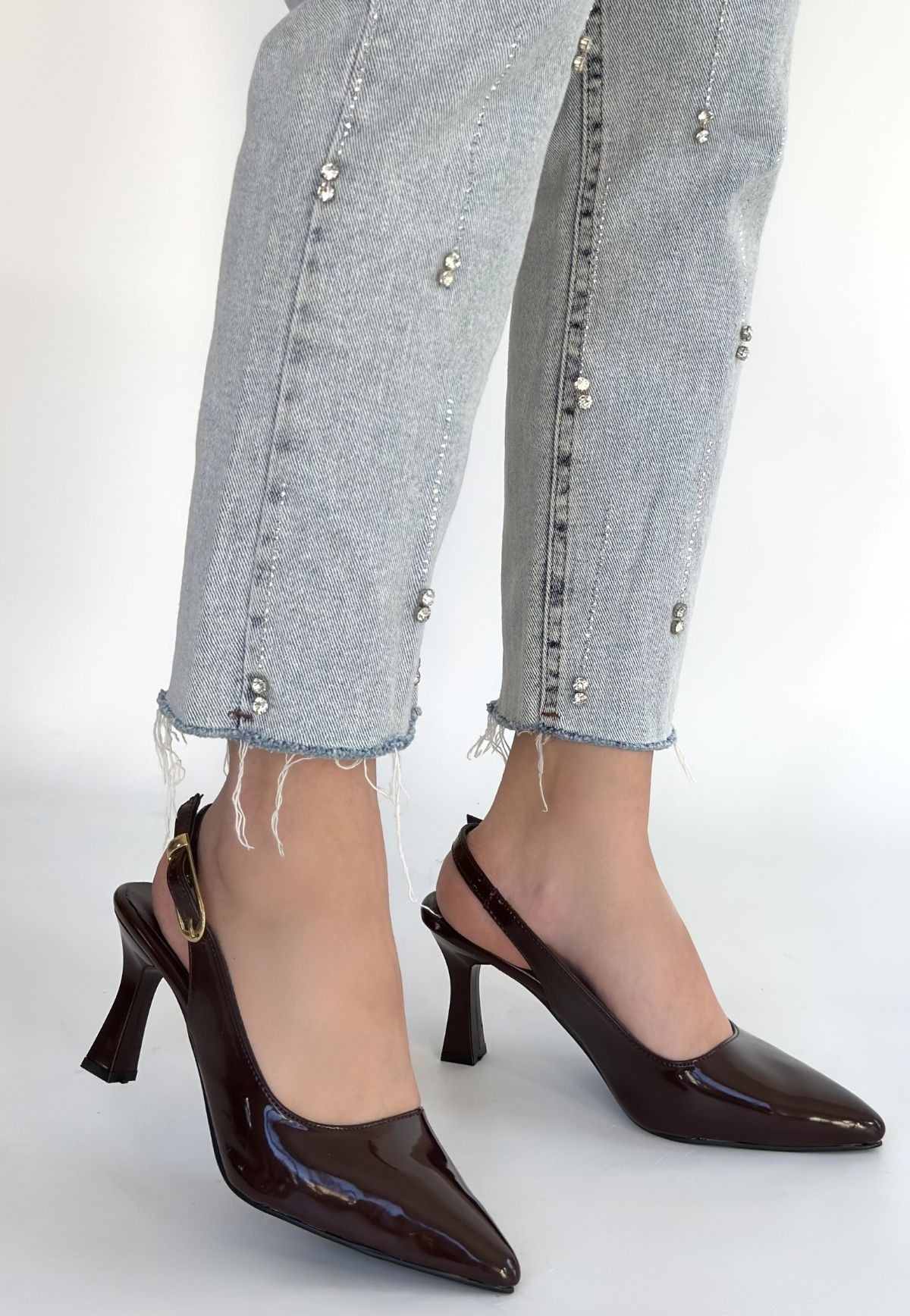 Kadın Konforlu Adım Hies Kahverengi Rugan Topuklu Ayakkabı
