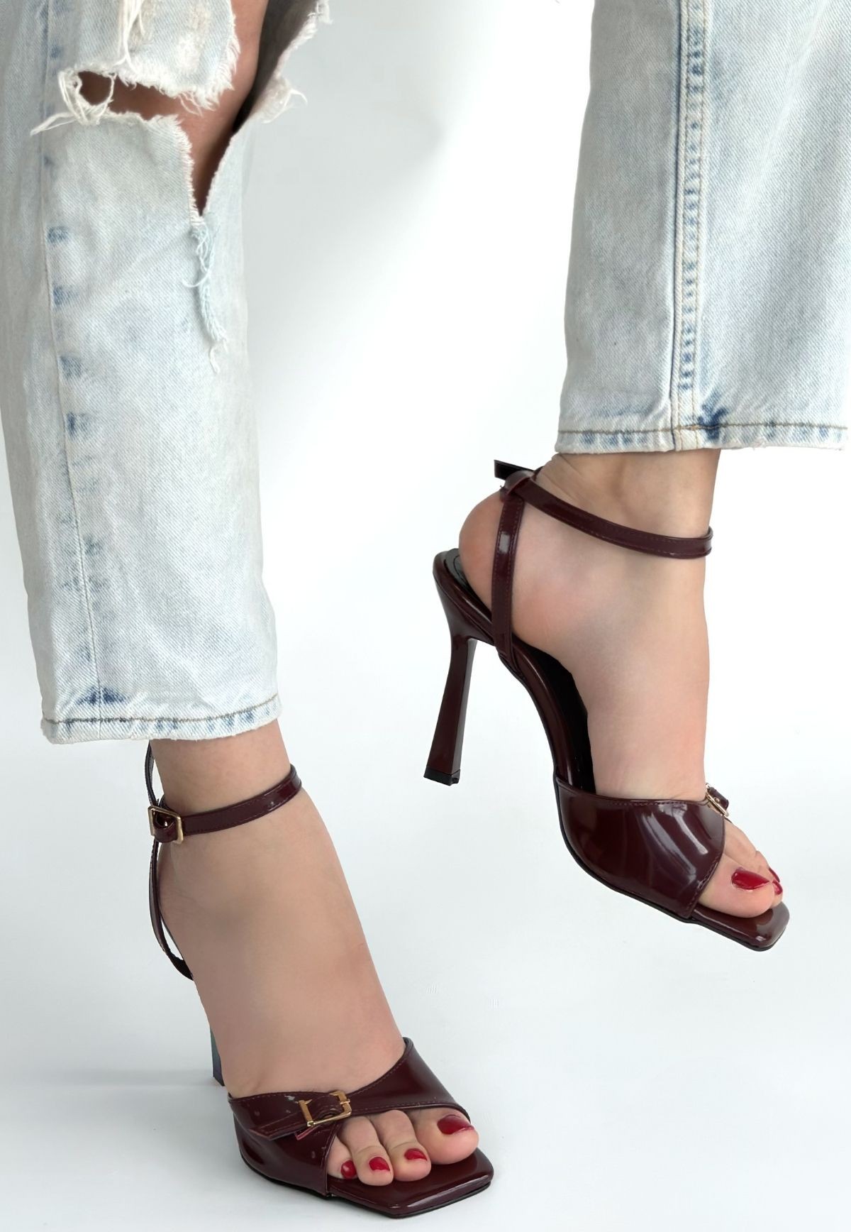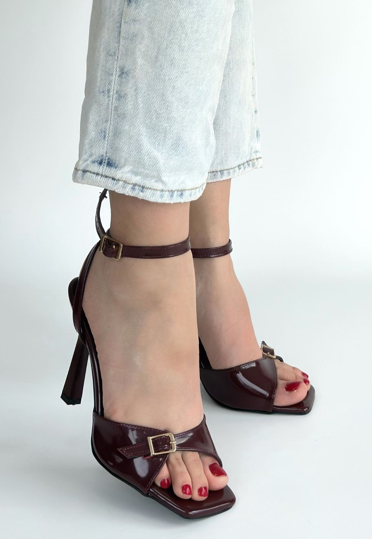 Hoste Bordo Rugan Topuklu Bilekten Kemerli Ayakkabı