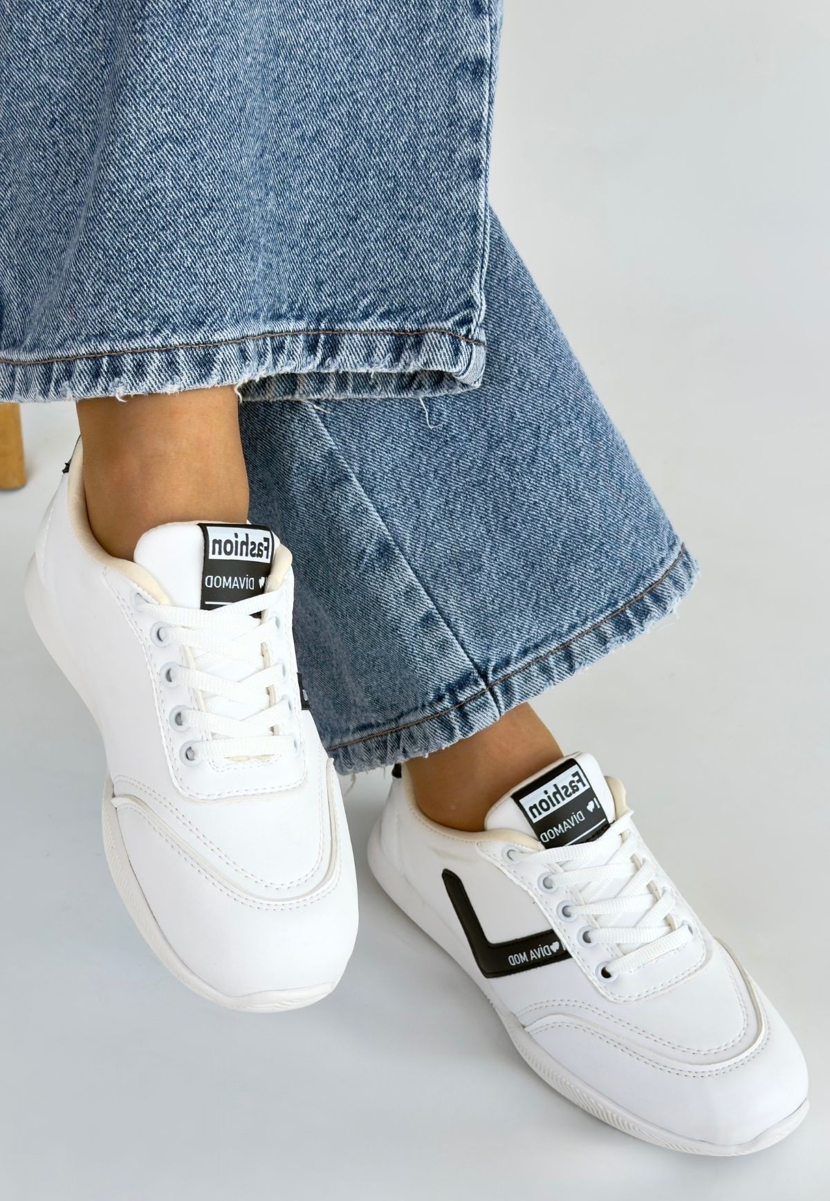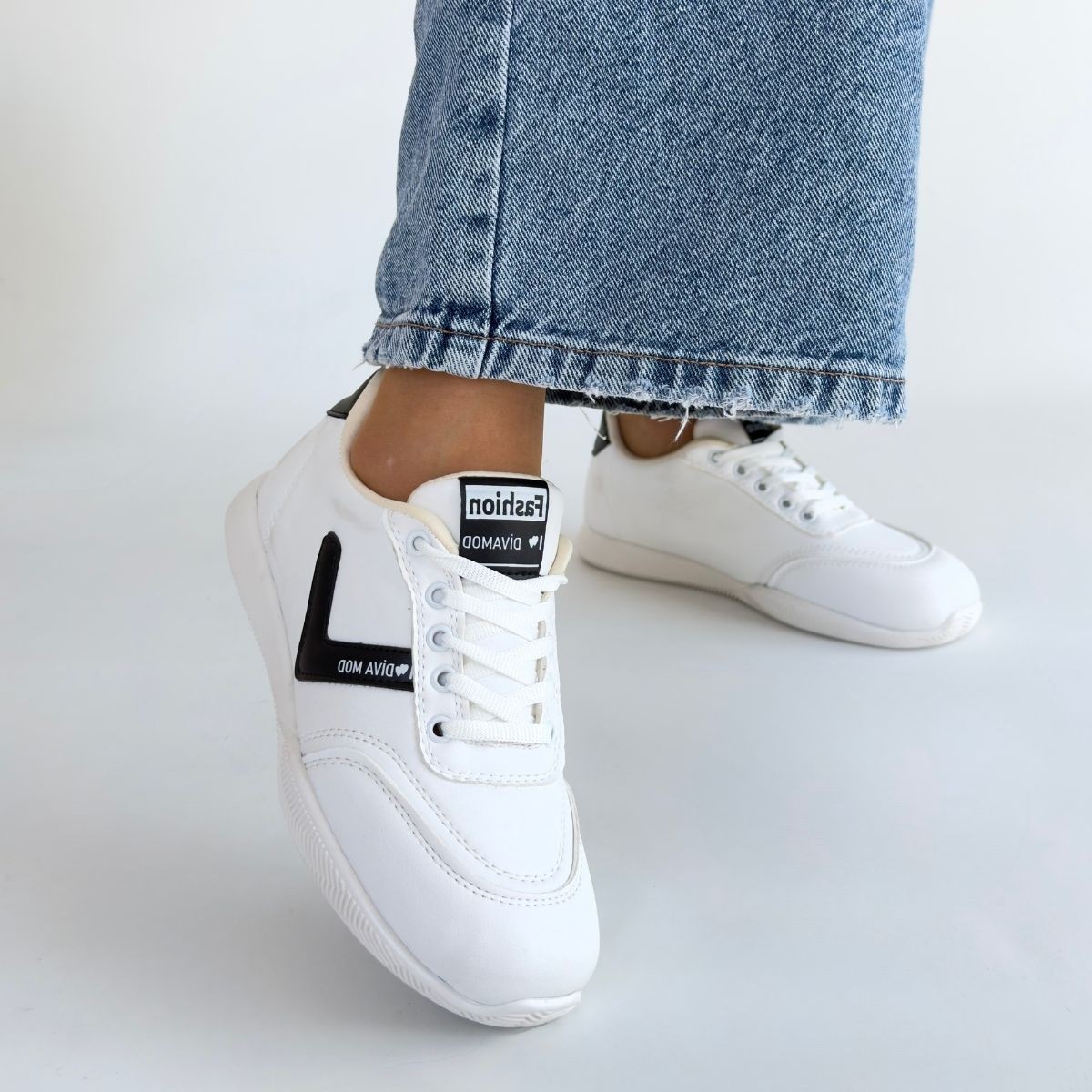 Cilt Kadın Konforlu Adım Jowen Beyaz Siyah Detaylı Bağcıklı Spor Ayakkabı